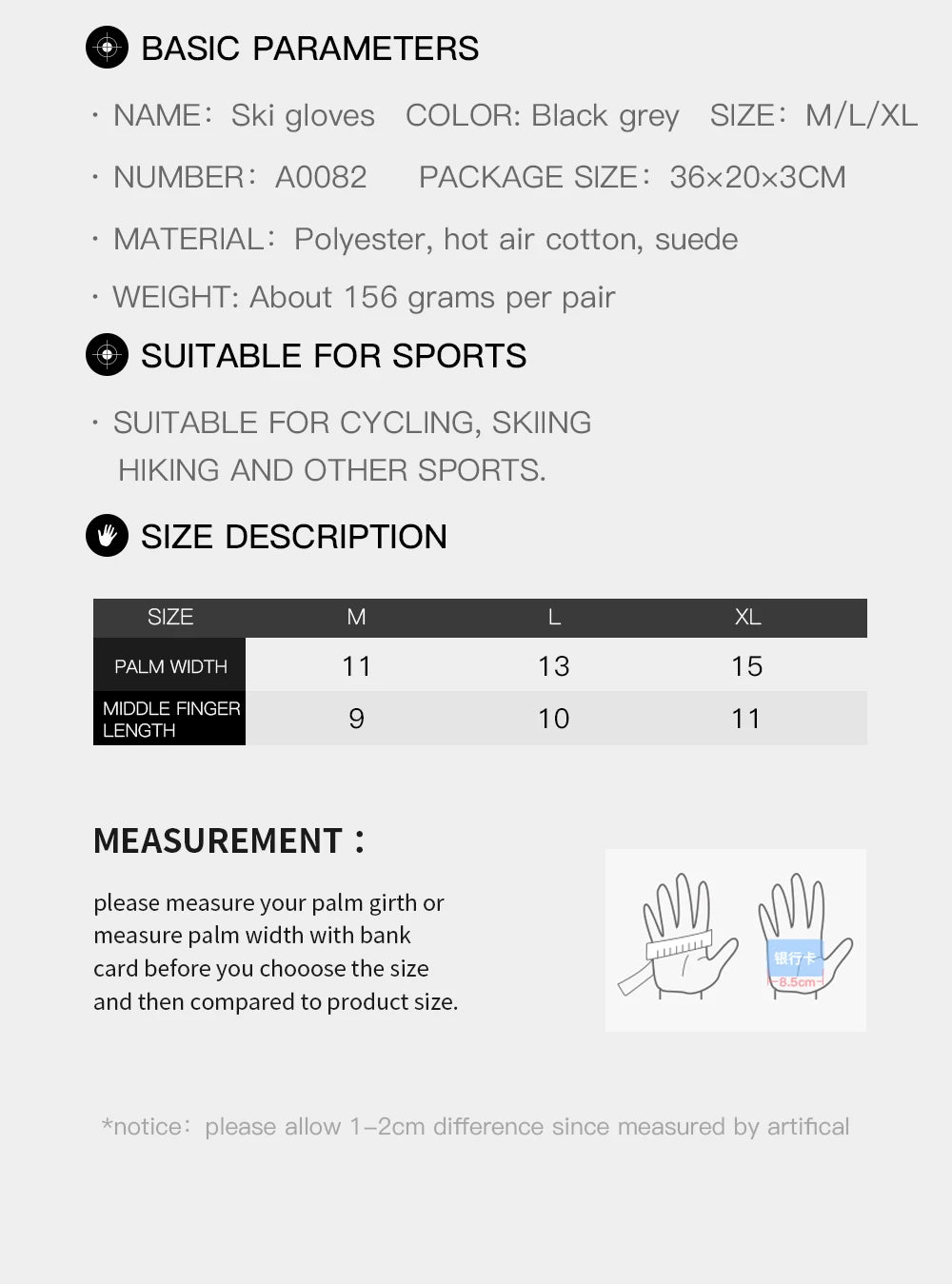 Winter Outdoor Snowy Cycling Skiing Sports Mountaineering Warm Windproof Waterproof Durable Waterproof Ski Thick Gloves