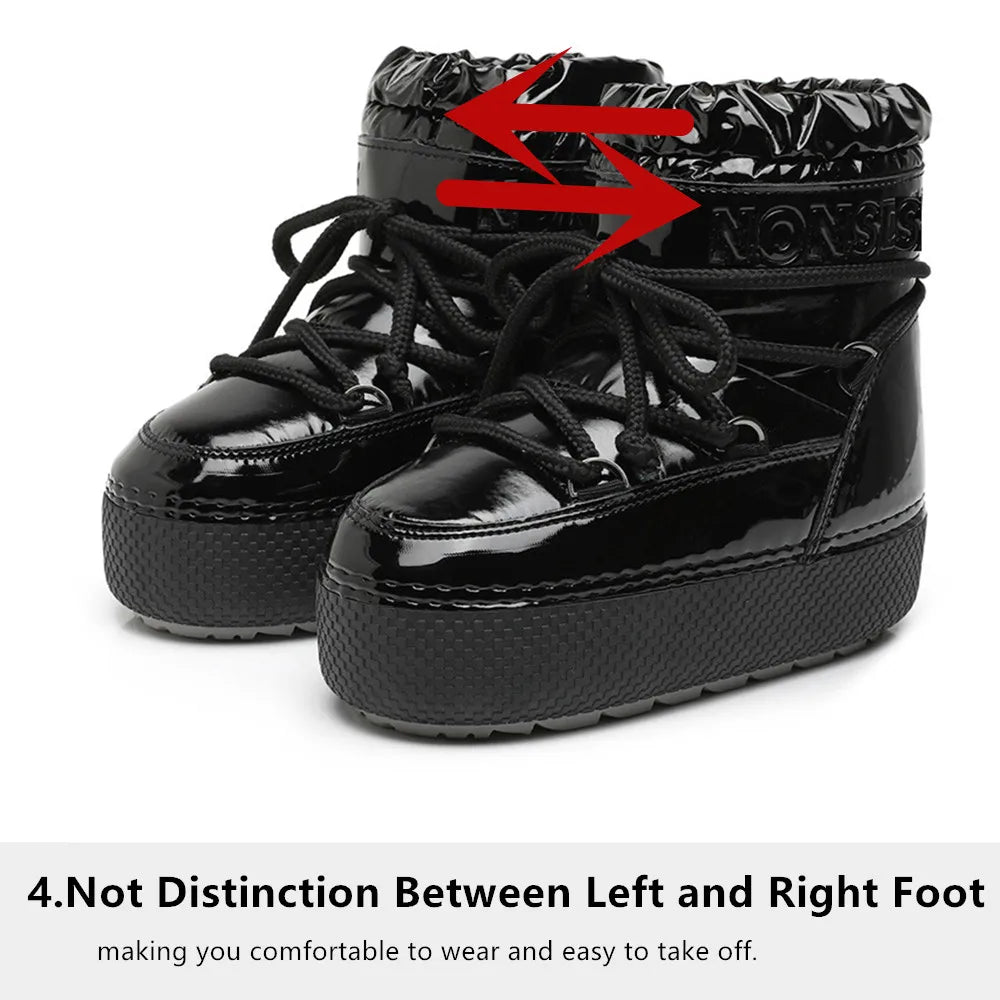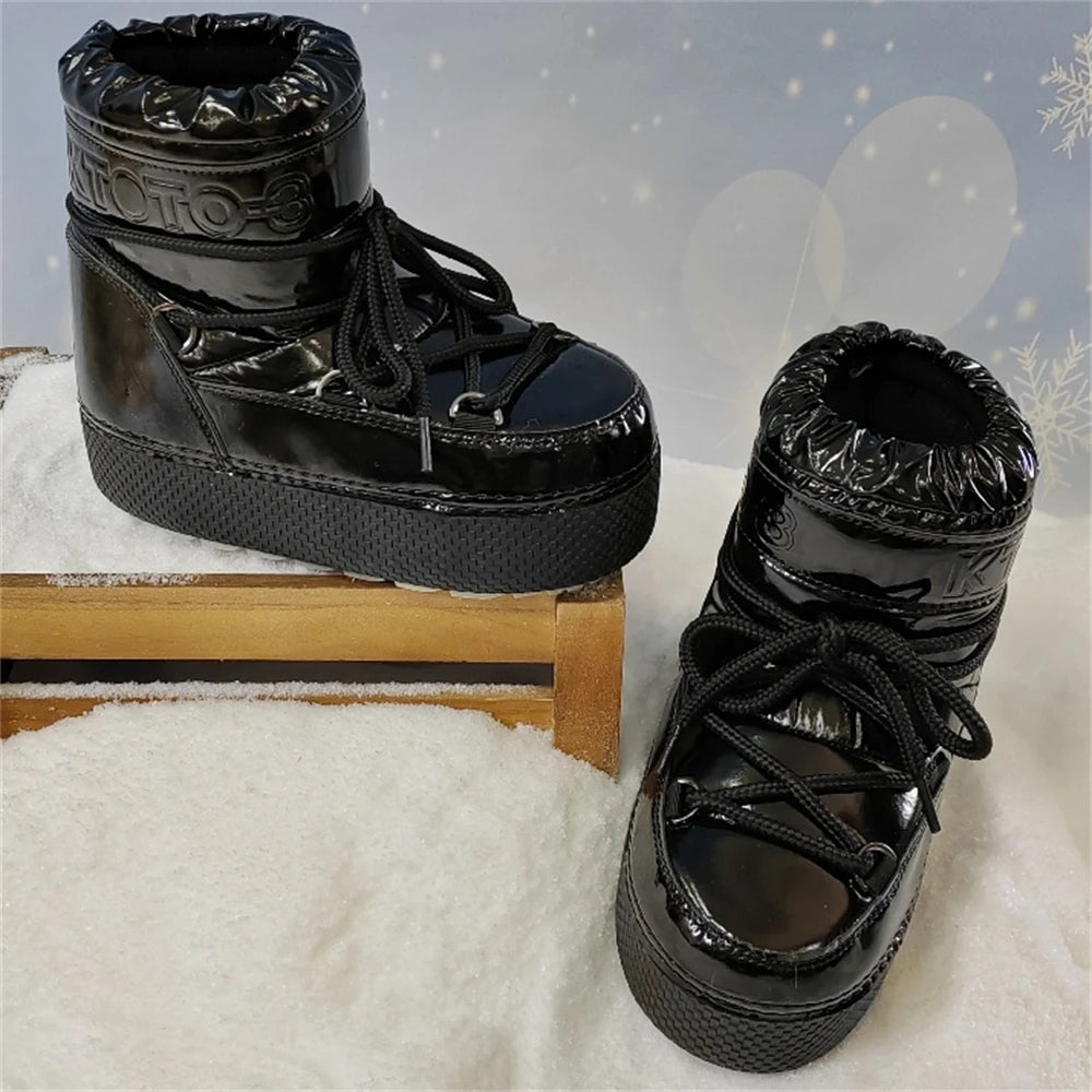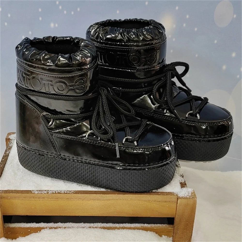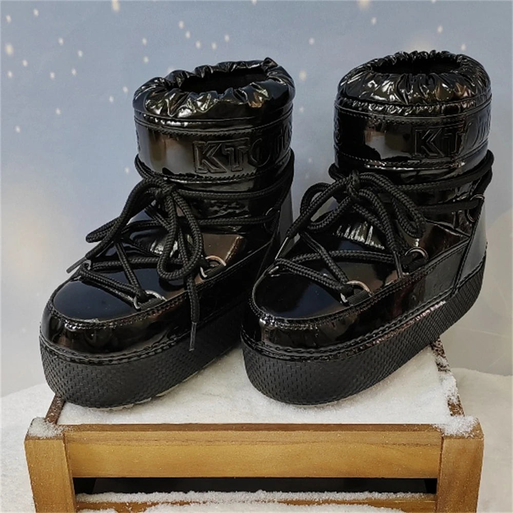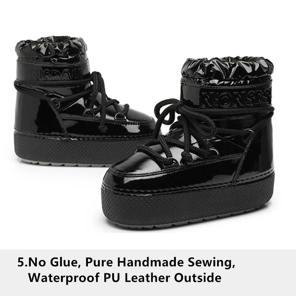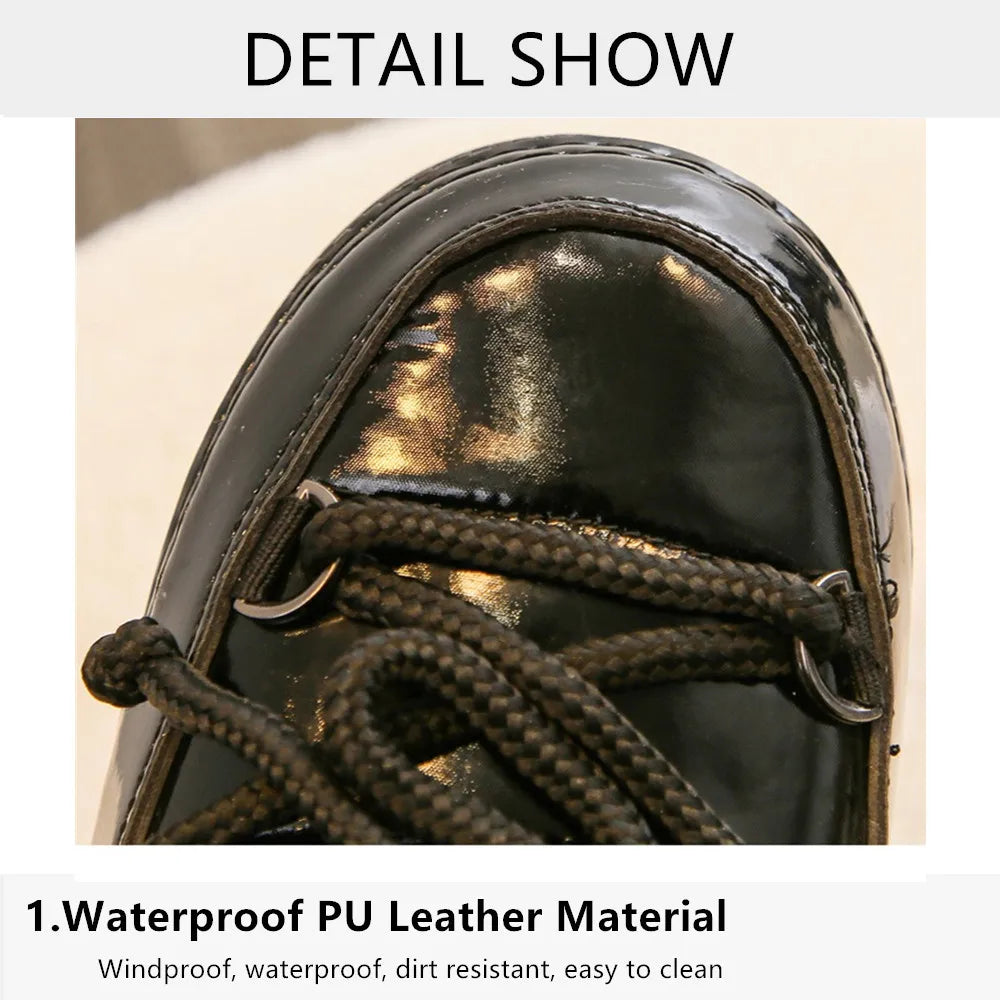 Women Platform Boots 2025 Winter Ski Boots Woman Non-slip PU Leather Waterproof Snow Boots Black Sponge Cotton Lined Ankle Boots