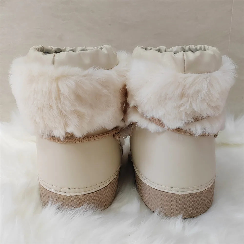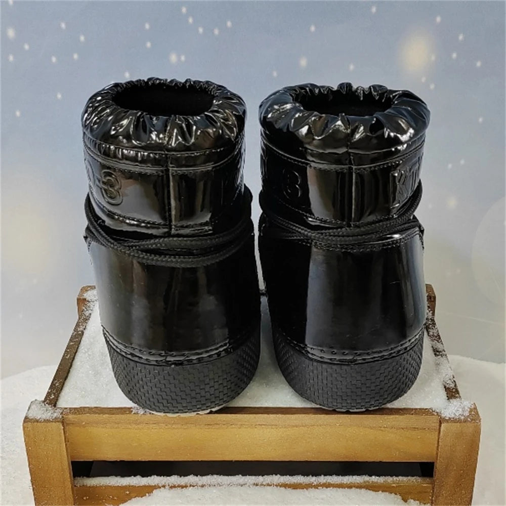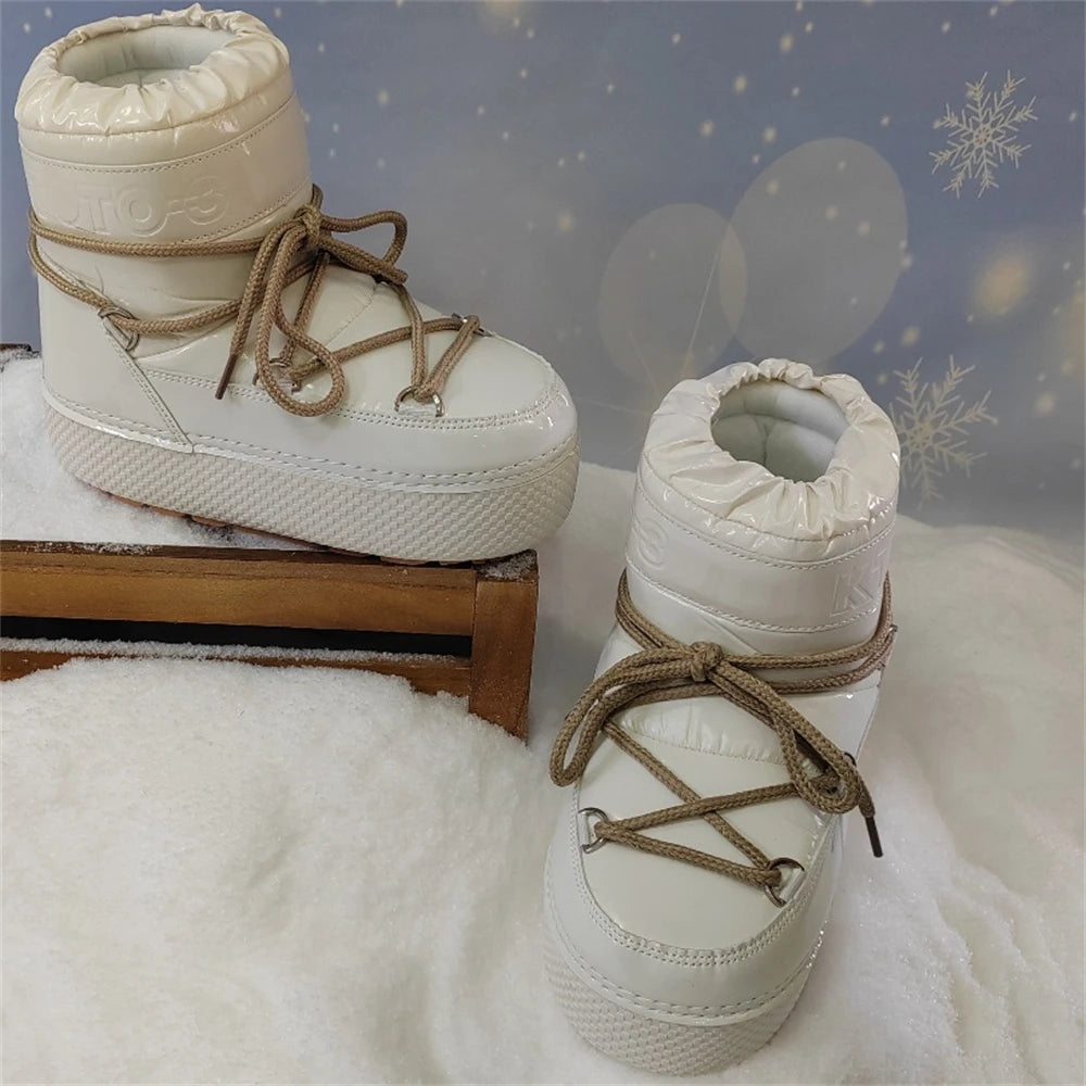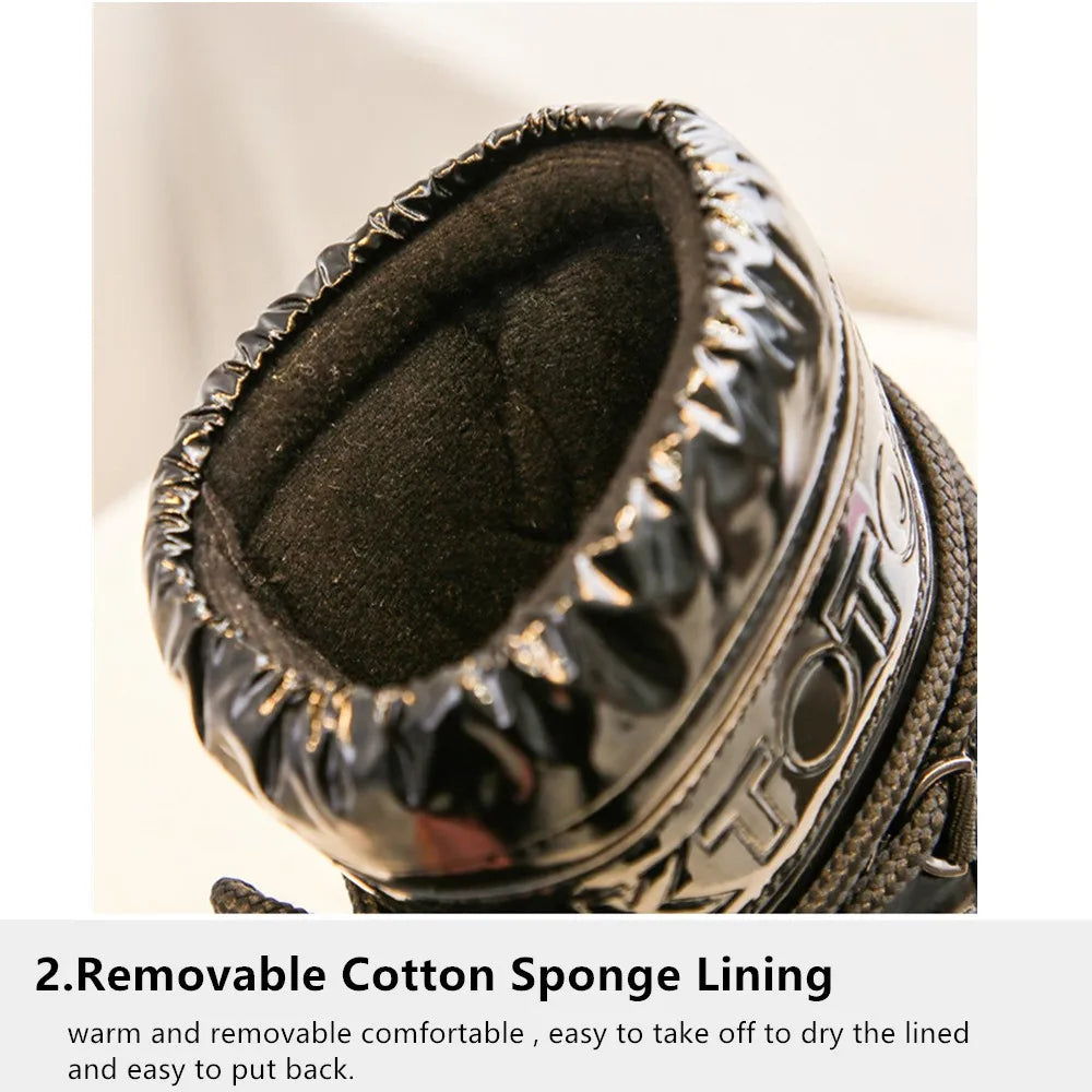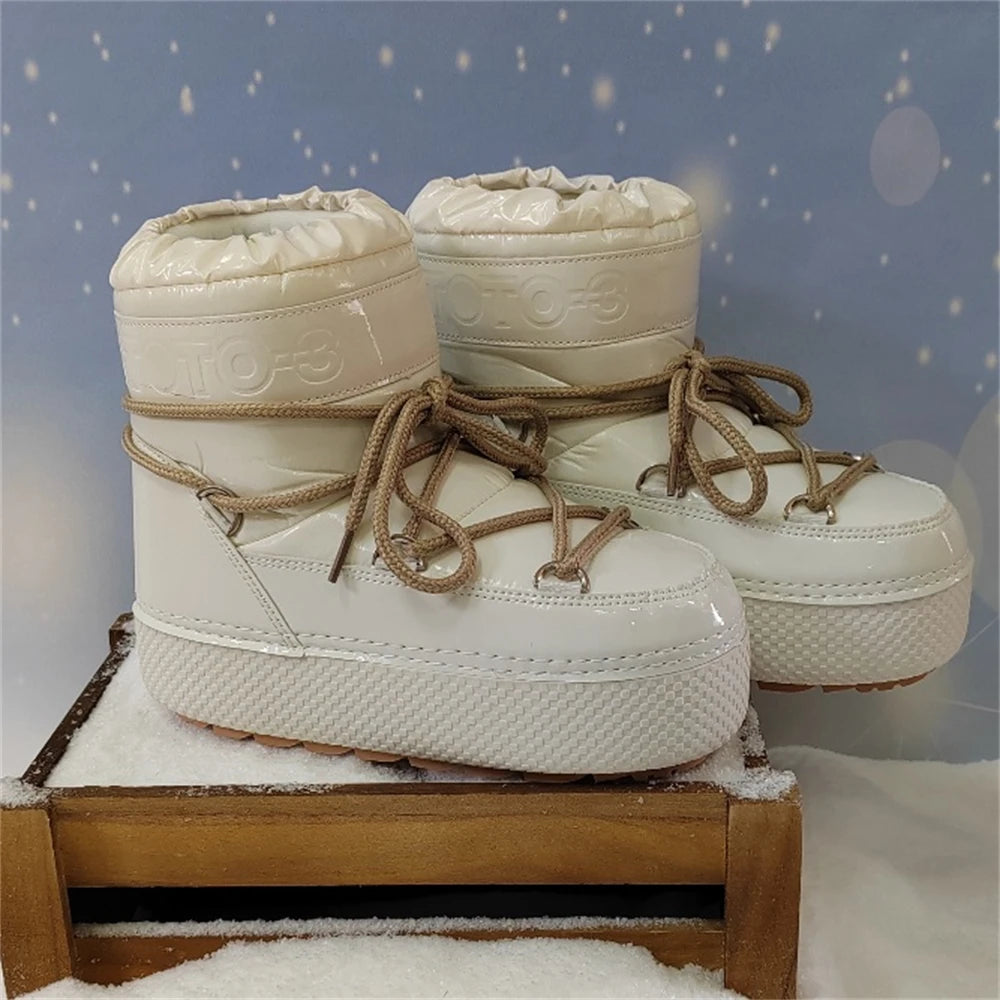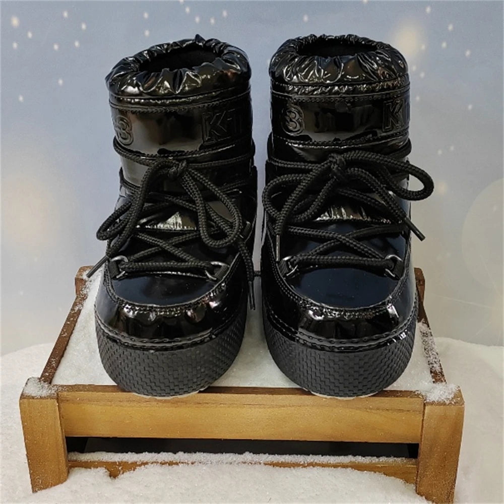 Women Platform Boots 2025 Winter Ski Boots Woman Non-slip PU Leather Waterproof Snow Boots Black Sponge Cotton Lined Ankle Boots