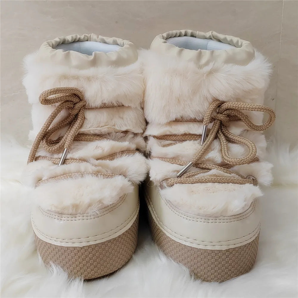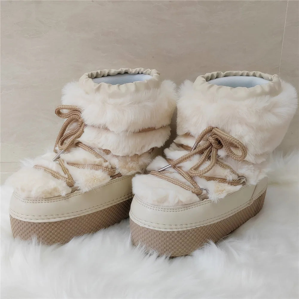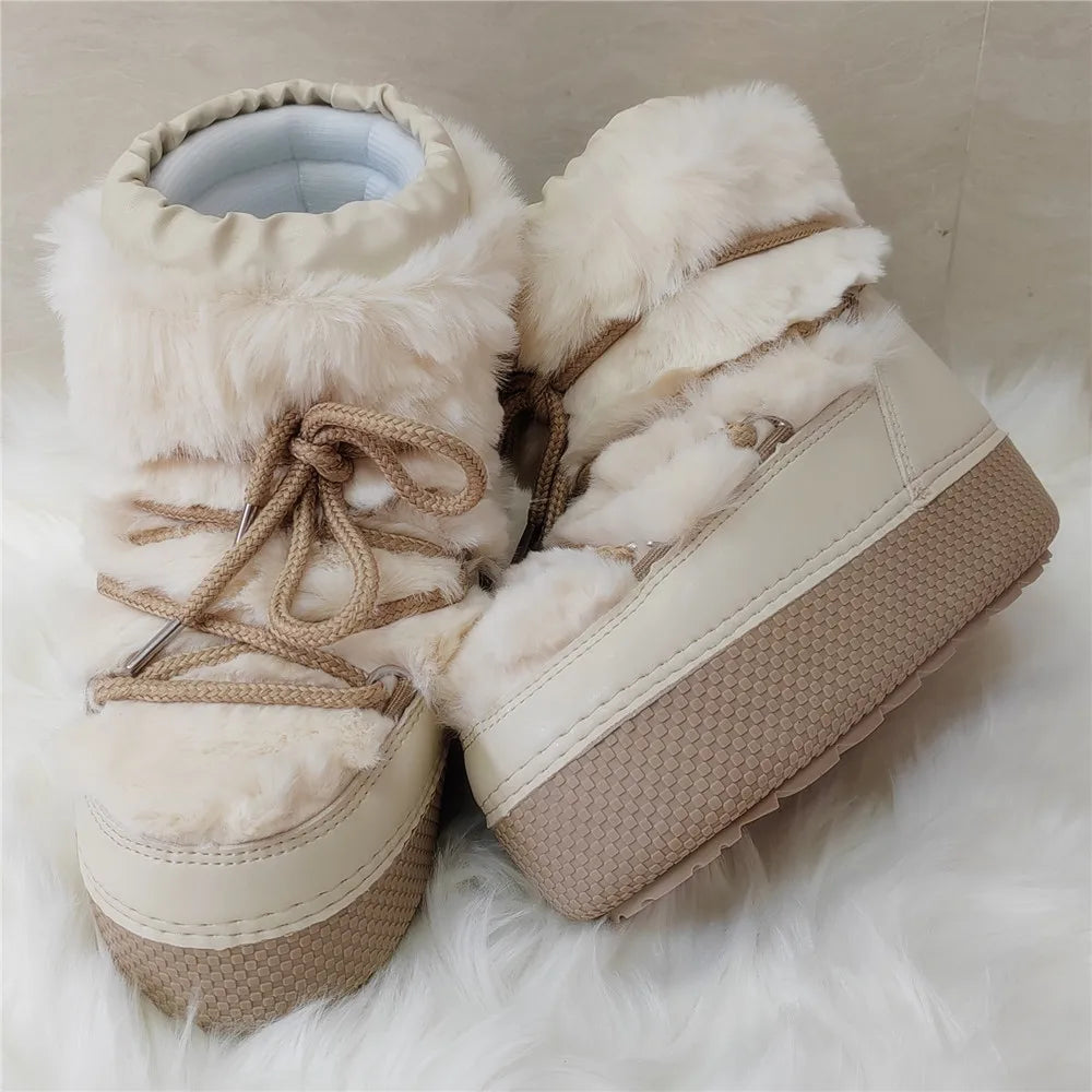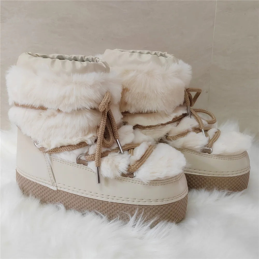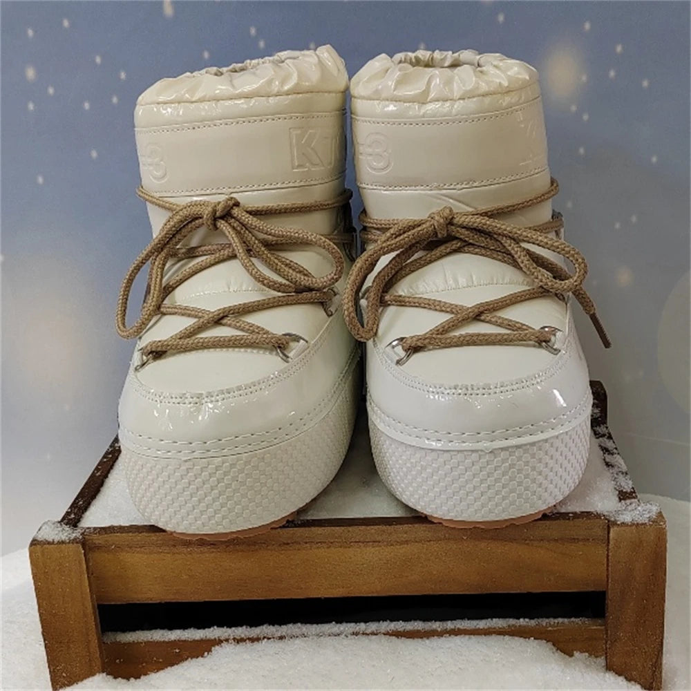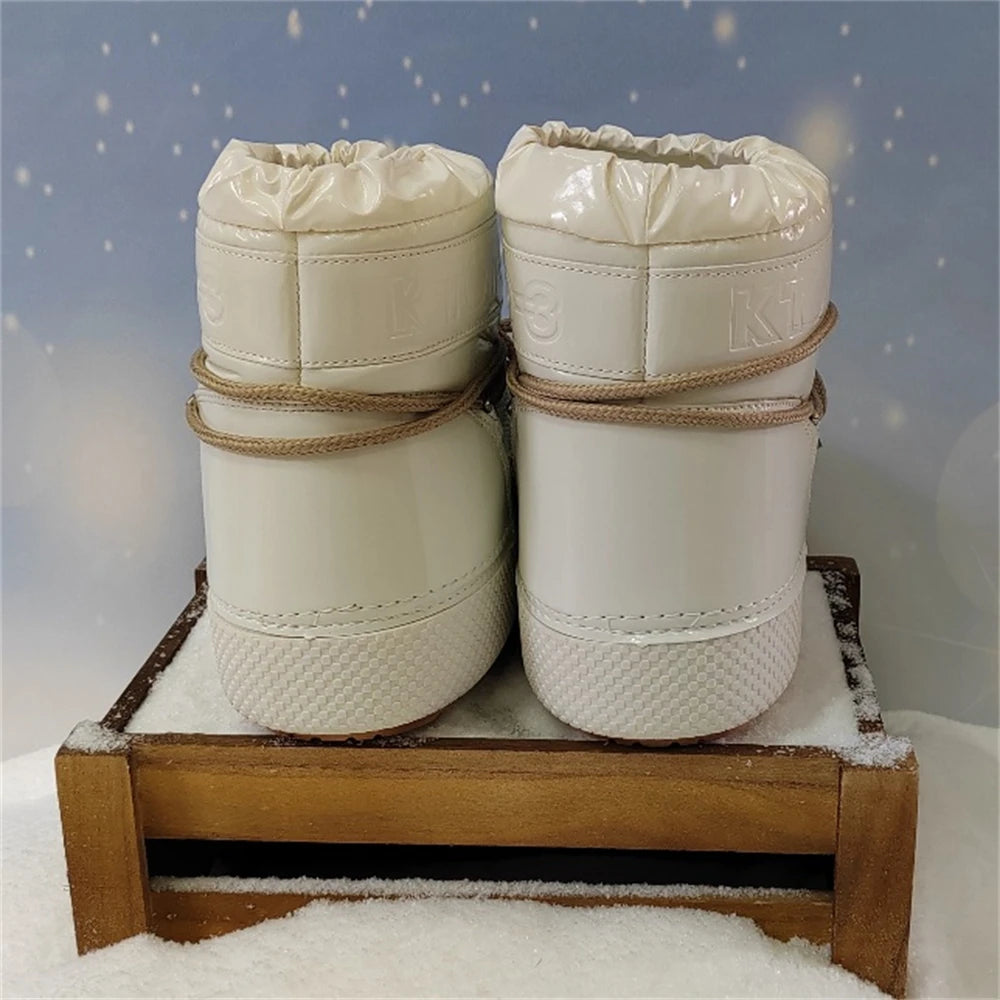 Women Platform Boots 2025 Winter Ski Boots Woman Non-slip PU Leather Waterproof Snow Boots Black Sponge Cotton Lined Ankle Boots